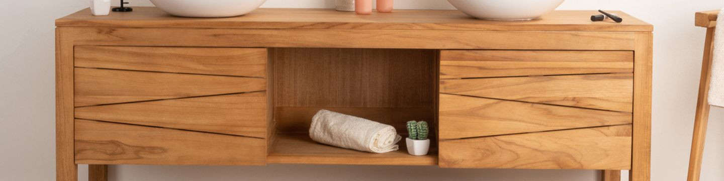 La colección Cosy está pensada para crear un baño sereno y acogedor, con la belleza natural de la teca como protagonista. Ofrece soluciones para cada espacio: modelos suspendidos de 40 cm y 50 cm para zonas compactas, versiones de 67 cm y 70 cm para un equilibrio perfecto, y una opción más amplia de 160 cm cuando buscas un conjunto con presencia.