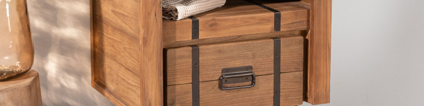 La colección Loft lleva al baño un aire industrial y elegante, mezclando madera de mindi con estructura de metal/acero. Es ideal para dar carácter a espacios modernos y mantener una estética limpia. La gama incluye mueble lavabo de 60 cm y una opción doble de 160 cm, con acabados en gris, blanco o natural.