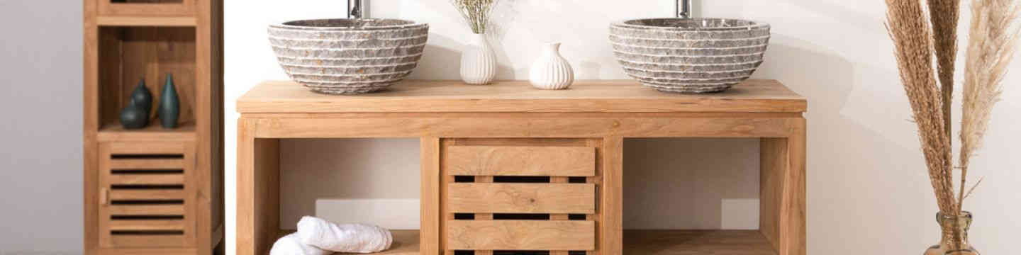 Inspirados en la naturaleza, nuestros muebles de baño con doble lavabo se adaptan perfectamente al estilo de decoración de tu baño. Colocados sobre patas o suspendidos en la pared para dar una impresión de ligereza, todos nuestros muebles de baño están diseñados de manera artesanal. Fabricados con una combinación de materiales naturales como el metal y la madera maciza de teca o mindi, los muebles con doble lavabo crean una atmósfera zen en toda la habitación. Descubre una amplia selección de muebles de doble lavabo para tu baño moderno.