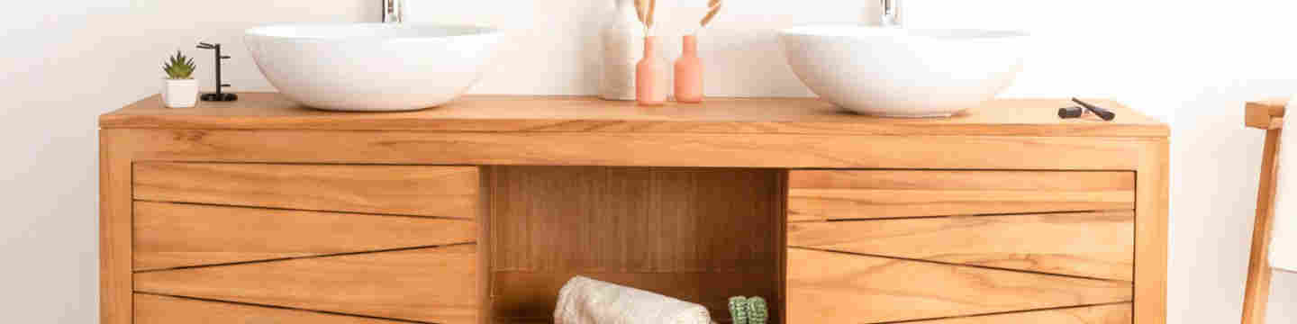Mueble de teca maciza para lavabo doble Théa 165 cm